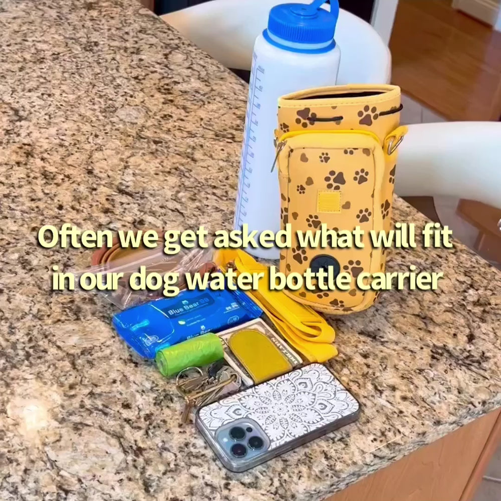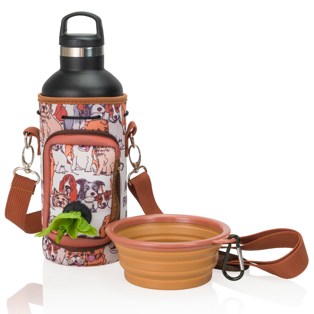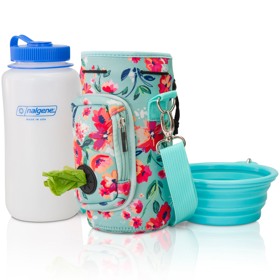 (V1 Model) Water Bottle Carrier with Pet Pocket (32oz Large) - Includes Nalgene Bottle and Portable Pet Bowl