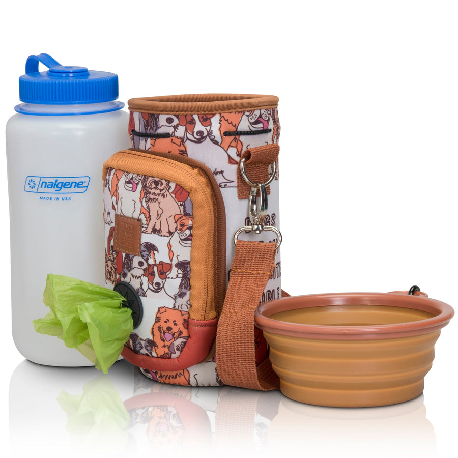 (V2 Model) Water Bottle Carrier with Pet Pocket - Includes Nalgene Bottle and Portable Pet Bowl