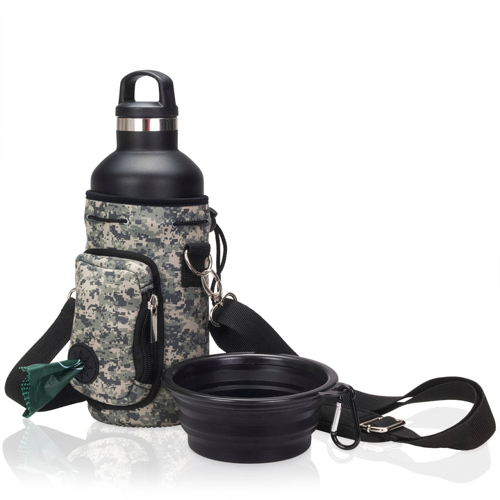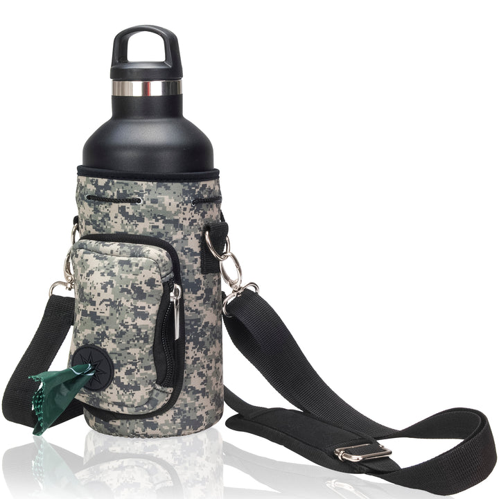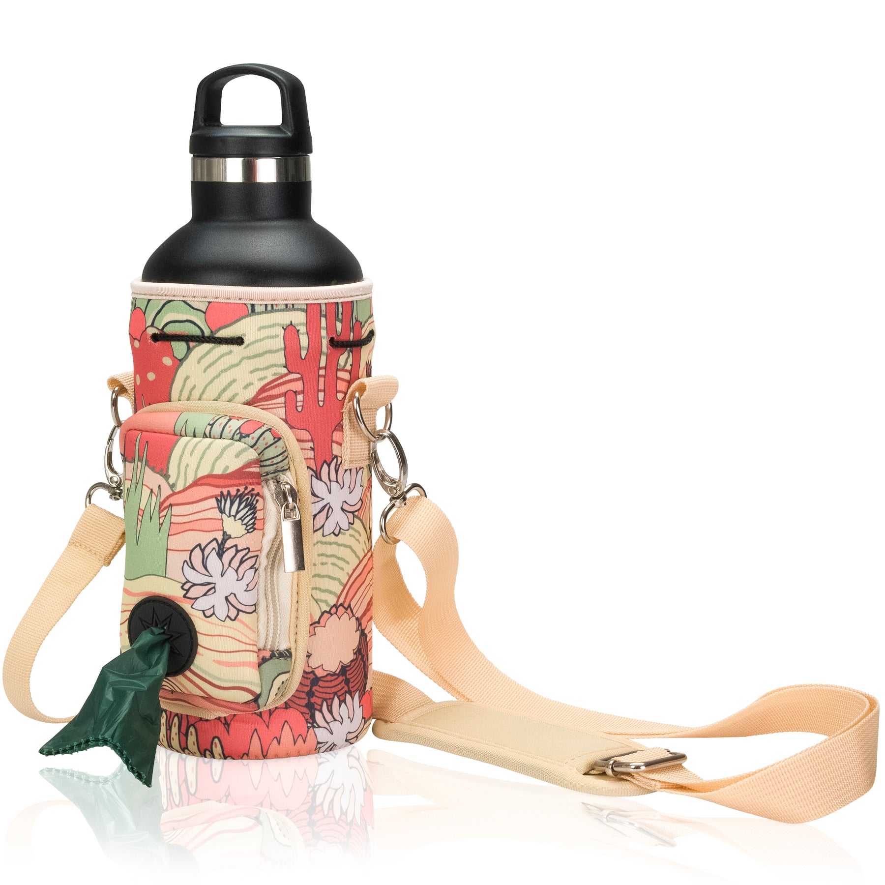- SIZE 7.25" x 3.5" - Compatible with 32oz water bottles and containers - 55" Adjustable shoulder strap