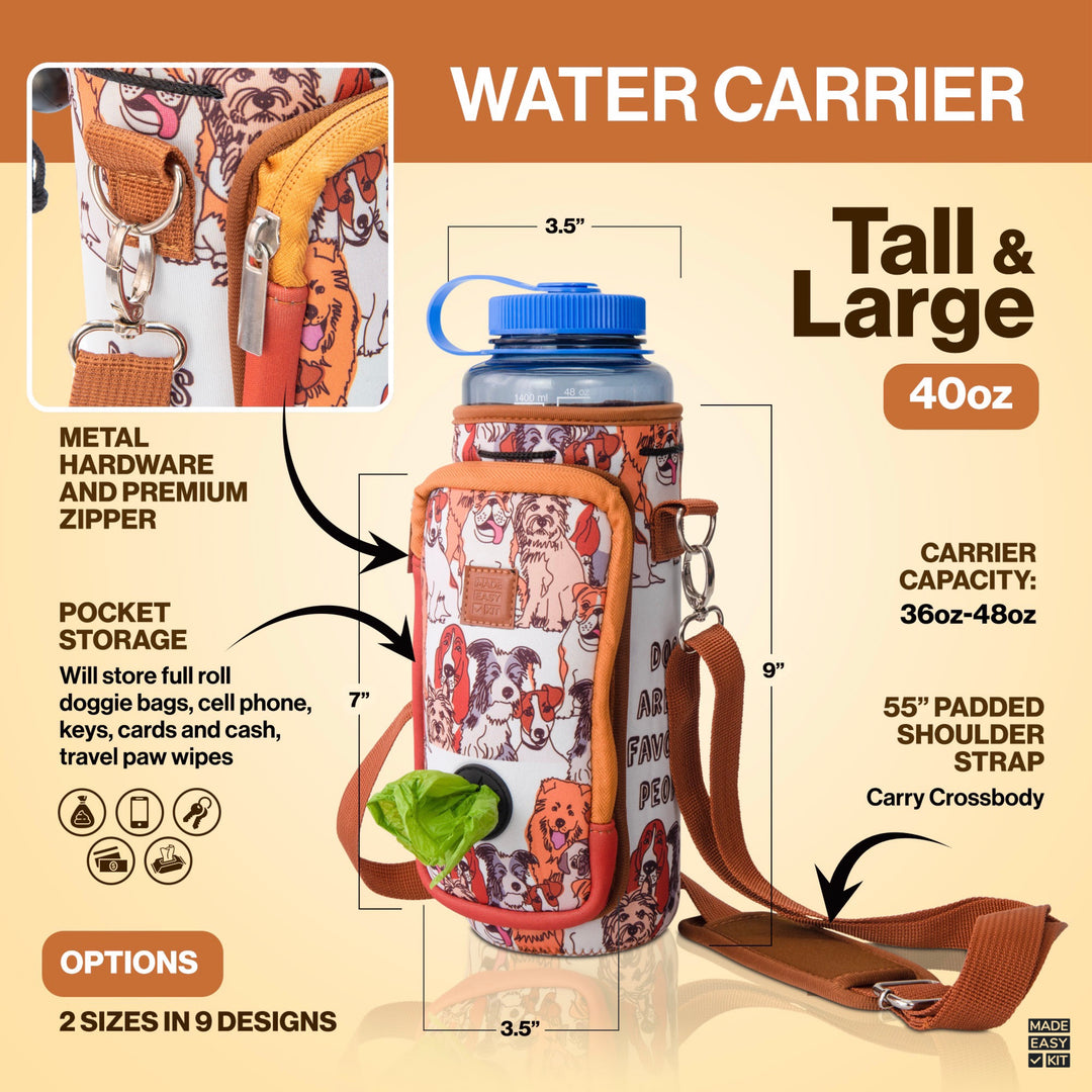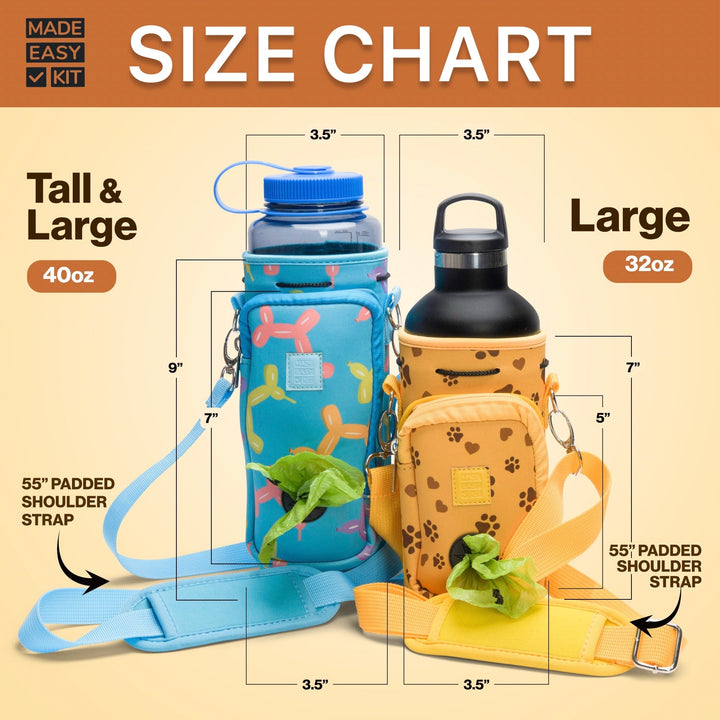 - Tall & Large - SIZE 9" x 3.5" - Compatible with 40oz water bottles and containers - 55" Adjustable shoulder strap